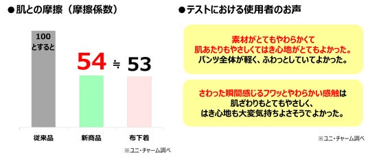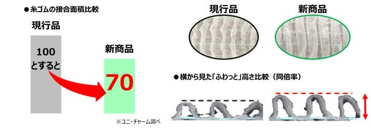 ・硬くなりやすい糸ゴムの接合面積を減らすことで、やわらかさを感じる範囲が広がりました。