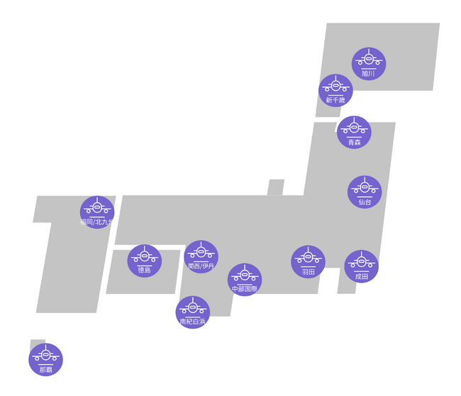 現在は、全国14の空港(成田国際・中部国際(セントレア)・関西国際・大阪国際(伊丹)・東京国際(羽田)・新千歳・福岡・北九州・那覇・青森・旭川・仙台・南紀白浜・徳島)と、空港周辺の都市部でご利用いただくことができます。対象エリアであれば、出発地となるご自宅から空港、そして空港から最終目的地まで一気通貫でつながるため、公共交通機関の乗り換えがなくなるなど、ストレスフリーな移動体験を提供することができます。
