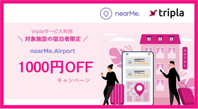 また、提携開始に伴い、トリプラのサービスを利用する施設の宿泊者限定で「nearMe.Airport」の利用が1,000円割引となるキャンペーンを実施いたします。