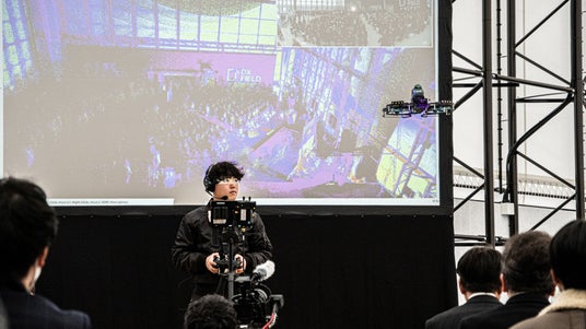 機体サイズ400mm以下の小型ドローンによる屋内安定飛行と、リアルタイム3D点群データ化の大画面投影を通じて、DRONE SPORTSは本イベントのオープニングを演出いたしました。