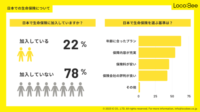 株式会社IC(本社:東京港区/JASDAQスタンダード4769/代表取締役社長執行役員:齋藤良二)が運営する、国内最大級の在留・訪日ベトナム人向けポータルサイト【LocoBee】は、日本に住むLocoBeeユーザー(在留ベトナム人)に対し、日本での生命保険加入に関してアンケート調査を実施しました。その結果をご報告いたします。