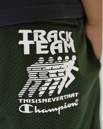 チャンピオンとthisisneverthatのコラボレーション・コレクションは、プルオーバージャケット、ロングパンツ、ショートスリーブTシャツ、ショーツ、メッシュショーツ、バケットハットを展開します。