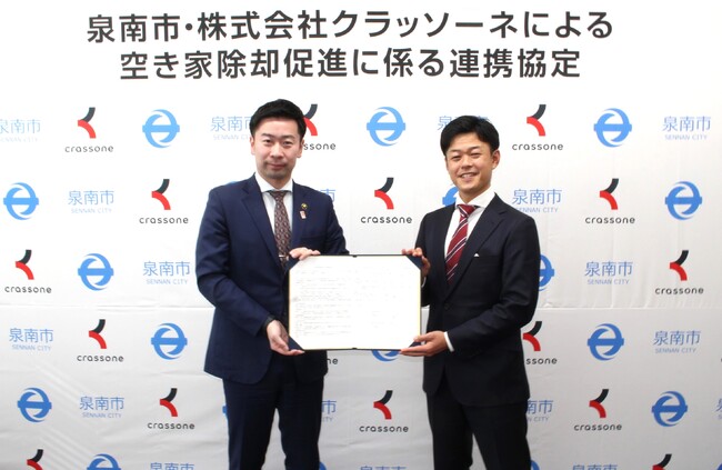 解体工事の一括見積もりWebサービス「クラッソーネ」を運営する株式会社クラッソーネ(愛知県名古屋市、代表取締役:川口 哲平、以下「当社」)は、大阪府泉南市(以下、「泉南市」)と空き家除却促進に係る連携協定を締結いたしました。昨今、全国的にも社会課題となっている空き家問題への対策として、泉南市内の空き家の適切な管理を推進することで、市民が快適に安心して暮らせるまちづくりの実現を目指します。
