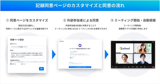 株式会社ailead(本社:東京都港区、代表取締役:杉山大幹)が提供する商談・面談解析クラウド「ailead(エーアイリード)」は、このたび新たに「記録同意機能」をリリースしたことをお知らせします。本機能は、aileadが提供する録画やコミュニケーション内容の記録機能に対して、ミーティングの外部参加者から事前に同意を取得することが可能になり、企業におけるコンプライアンス対応を強化し、商談・面談時のトラブル防止などリスクマネジメントに貢献します。
