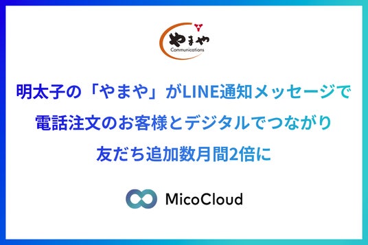 Micoworks株式会社(本社:大阪市北区、代表取締役社長:山田 修)は、明太子をはじめとする食品販売事業を展開する株式会社やまやコミュニケーションズ(本社:福岡県糟屋郡、代表取締役社長:山本 正秀)が、LINEを活用したマーケティングプラットフォーム「MicoCloud(ミコクラウド)」を活用し、LINE通知メッセージを導入したことを発表いたします。