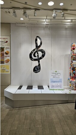 私たちは音楽をテーマにダンボールや紙袋などを再利用したト音記号のオブジェを制作しました。