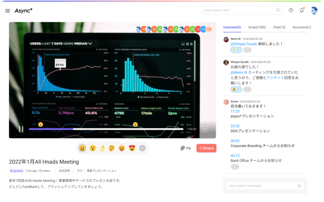 会議や報告事項を動画として『Async*』にアップロードして蓄積。