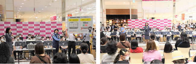 飯豊支援官は、冒頭の挨拶のなかで「私はSOS47の特別防犯支援官として活動しています。SOS47とは特殊詐欺の被害防止に向けた広報啓発を行うことを目的として結成されたチームです。メンバーにはアイドルやアーティストなど様々な方がいて、全国各地のイベントやメディアへの出演、動画やポスターでの啓発を通して、高齢者だけでなく、若い方々など幅広い世代に向けて特殊詐欺の危険性と被害防止対策を伝えています。千葉県は私の地元でなじみのある場所なので、こうして千葉県に帰ってきて特殊詐欺の呼びかけができとても嬉しいです。千葉県民の皆様に今日は特殊詐欺の被害について少しでも知ってもらって、身近にあるものだと感じてもらえるようお役に立てればと思っています。よろしくお願いします。」と地元千葉県での特殊詐欺の呼びかけについて意気込みを語りました。
