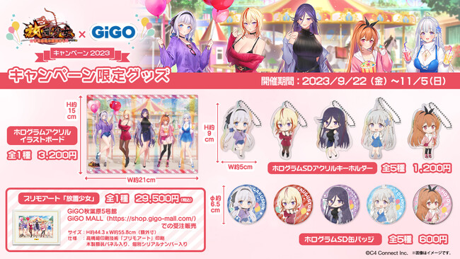 C4 Connect株式会社(本社:東京都渋谷区)は、2023年9月22日(金)より、現在サービス中の美少女RPGゲーム『放置少女~百花繚乱の萌姫たち~』(スマートフォンアプリ及びブラウザ版)(以下、『放置少女』)が、GiGOグループのお店とコラボレーションしたキャンペーンを開催することをお知らせいたします。