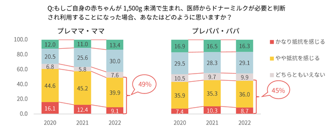 ドナーミルク利用への抵抗感は年々減少するも、プレママ・ママ、プレパパ・パパともに依然抵抗感が残る