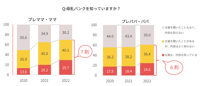 プレママ・ママの母乳バンクの認知率は約7割、プレパパ・パパも約6割に到達