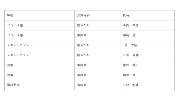 ※「メカトロニクス」職種は、チーム(2名)での受賞となります。