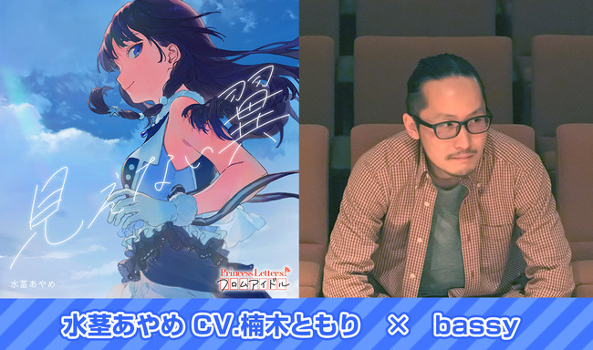 フロムアイドル運営事務局(松竹株式会社)は、 “アイドルと文通ができる”総合アイドルプロジェクト『Princess Letter(s)! フロムアイドル』※以降「プリレタ」( https://www.princess-letters.jp/ )が、2022年8月19日(金)00:00(AM)に各種楽曲配信サイト上で配信リリースを行う 水茎あやめ(CV.楠木ともり)『見えない翼(feat. bassy)』のコンポーザー「bassy」さんのコメントを公開いたしました。配信リリースに先駆けて、2022年8月17日(水)18:00にiOS/Android用リズムゲーム『D4DJ Groovy Mix(グルミク)』へ、先行で楽曲が原曲実装されます。