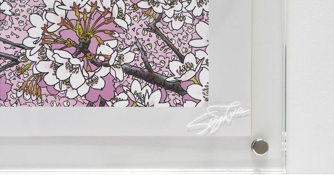 作者のサインが刻印された専用アクリルフレームに作品を飾って楽しめる