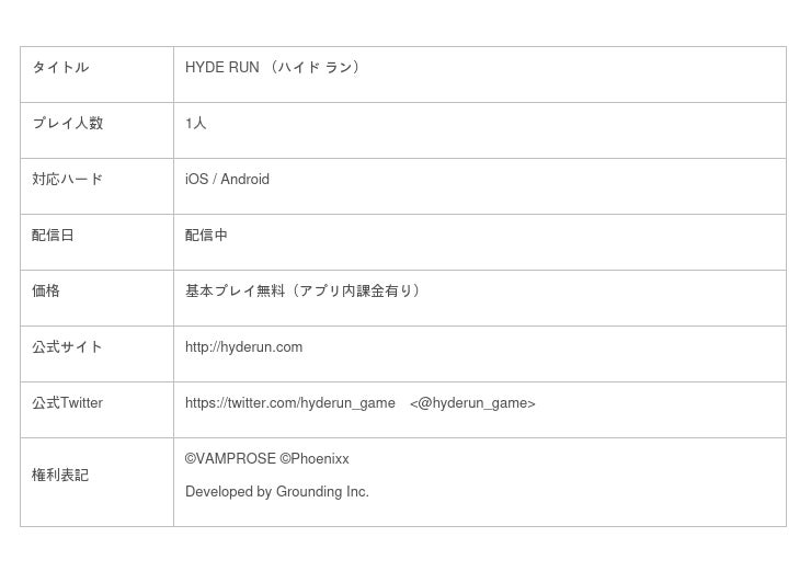株式会社Phoenixx(フィーニックス)(東京都武蔵野市、代表取締役社長:坂本 和則)は、現在配信中のHYDEのソロ活動20周年を記念したスマートフォン向けゲーム『HYDE RUN』と、楽天グループ株式会社とのコラボレーション企画実施が決定いたしましたことをお知らせいたします。