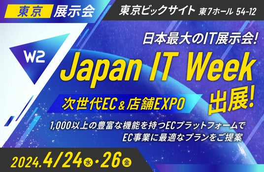 EC事業の「成功」にこだわる最先端ECプラットフォームを展開するW2(ダブルツー)株式会社(本社:東京都中央区、代表取締役CEO:山田 大樹、以下W2)は、「第33回 Japan IT Week 春~次世代EC&店舗EXPO~」に出展することをお知らせします。