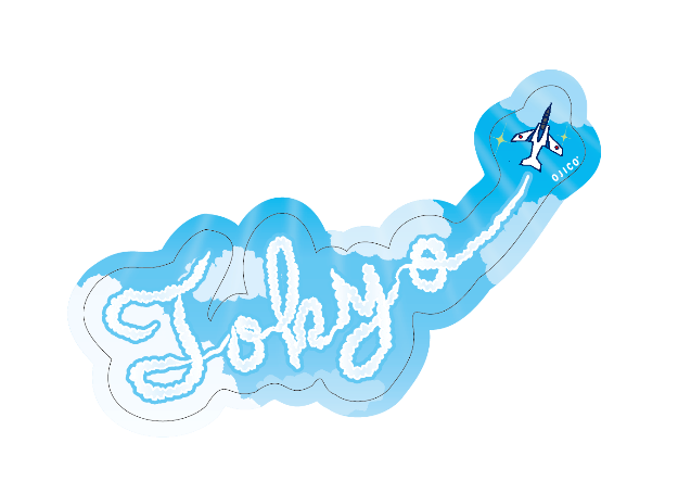 バックでは飛行機雲で「TOKYO」の文字を描いています。