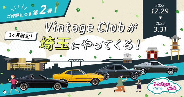 株式会社KINTO(本社:愛知県名古屋市、代表取締役社長:小寺 信也)は、旧車コミュニティ「Vintage Club by KINTO」で、今夏東京で好評を博した”旧車キャラバン”を埼玉、三重、大阪でも実施することを決定いたしました。旧車レンタルや展示イベントを展開いたします。