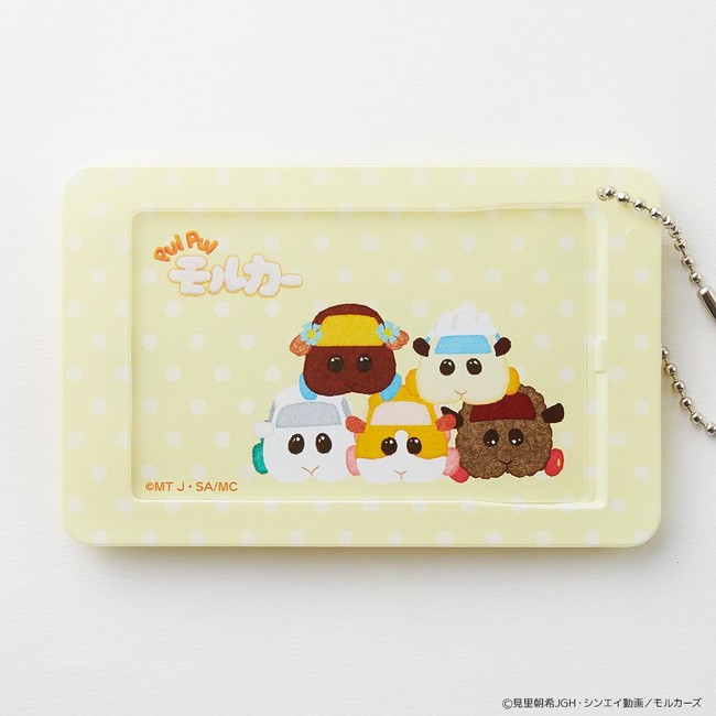 Tカードとセットで持ちたいスライドカードケースは、淡いイエロードット柄をベースにモルカーたちの可愛らしい表情がたっぷり楽しめるデザイン♪持っているだけでウキウキしちゃいます。