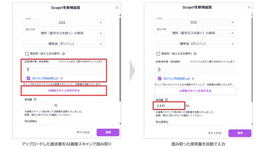 従来、証憑から使用量を手作業で入力するプロセスには時間と労力がかかり、記載ミスのリスクも伴っていました。本機能を活用することで、入力作業の工数を削減し、データの正確性を向上させることが可能になります。これにより、企業のサステナビリティ関連業務がよりスムーズかつ効率的に行えるようになります。
