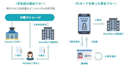 当社は、DID/VC(分散型識別子/検証可能な資格情報)プラットフォームを活用したハイブリッド型デジタル学生証プロトタイプ版をご紹介します。本製品は、ICカードとスマホアプリを組み合わせることにより、リアルとオンラインの両方で高いセキュリティ性を有した認証を可能にし、各種証明書の発行や出席管理の認証へ利用することができます。