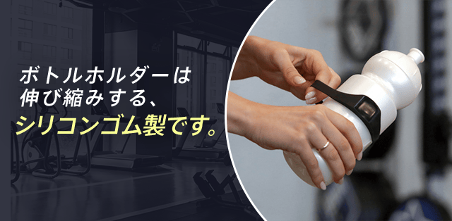 ボトルホルダーは伸び縮みするシリコンゴム製。