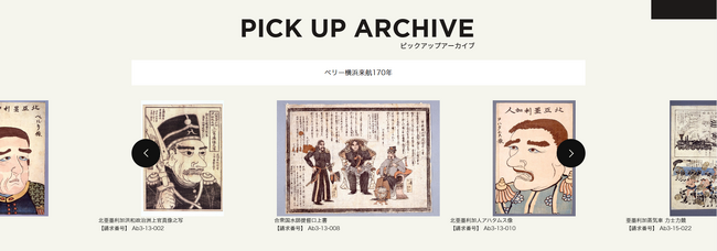 デジタルアーカイブ上の「PICK UP ARCHIVE(ピックアップアーカイブ)」では、ウェブ上の展覧会のように、テーマにあわせた所蔵資料を紹介しています。