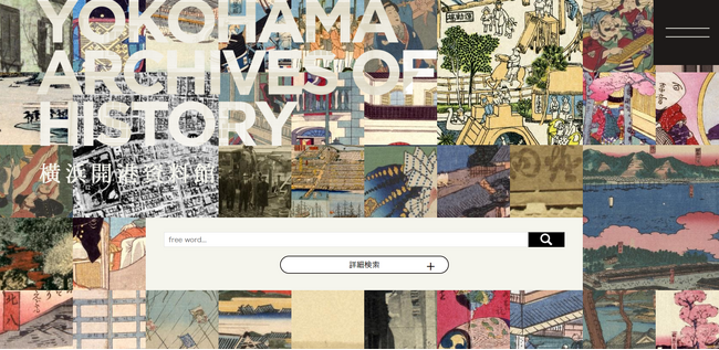 横浜開港資料館では、主に幕末から昭和初期までの、横浜に関する歴史資料約27万点を収蔵しています。古文書・写真・絵葉書・絵地図・浮世絵・絵画等、多様な収蔵資料の目録およびデジタル画像等の一部を検索・閲覧することができます。
