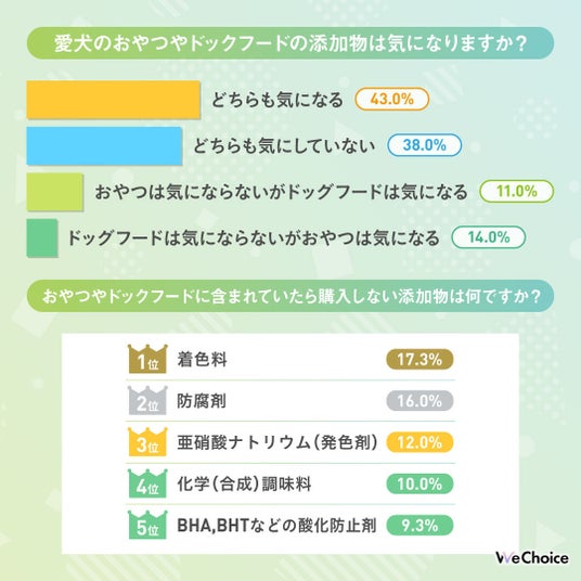 おやつやドッグフードなど、ワンちゃんが口にするもので「添加物」が気になるか聞いてみました。