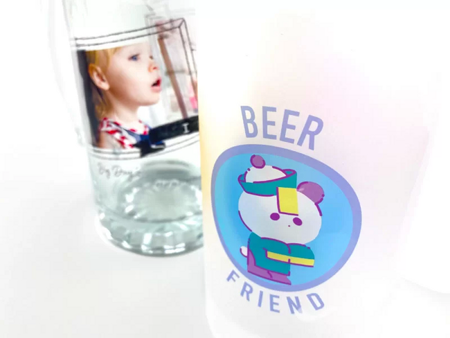 △お気に入りの写真やイラストでオリジナルビールジョッキをお作り頂けます。