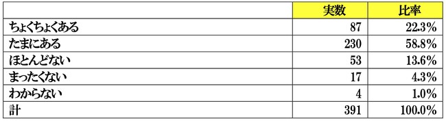 =「ちょくちょくある」(22.3%)と「たまにある」(58.8%)を合算