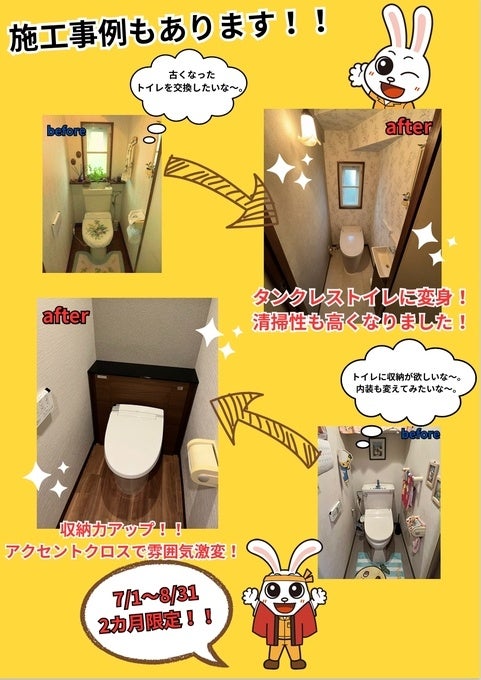 7月・8月、2カ月間限定のお得なキャンペーンですので、ぜひこの機会にリフォームをご検討くださいませ!
