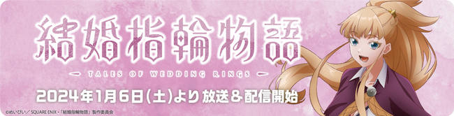 TVアニメ「結婚指輪物語」は、月刊「ビッグガンガン」(スクウェア・エニックス刊)にて大好評連載中のめいびいによる漫画を原作としたアニメーションです。累計部数は140万部 (電子書籍含む)を突破しており、2024年1月6日(土)のTVアニメ放送開始に先立って、開催される企画になります。