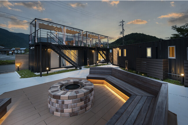 続く第2弾として、古くから熊野詣の宿場町としてにぎわった中辺路町近露に、「SEN.RETREAT CHIKATSUYU」を2022年4月28日、開業しました。コンセプトは「遊ぶ、微笑む、そしてつながる宿」。バーベキューができるプライベートガーデンや、焚き火を囲めるテラス、宿泊客自身で生地からこねて焼けるピザ窯などを備えています。非日常にワクワクしたり、気の置けない仲間や家族とゆったり過ごしてホッとしたり、リラックスできる空間となっています。また、コンテナ1棟を1つの客室としているため、外から直接部屋に出入りでき、密を避けられます。「熊野古道を訪れる観光客=トレッキング目的のみ」という現状を変えるべく、さまざまな観光目的の方に楽しんでいただける宿を目指します。