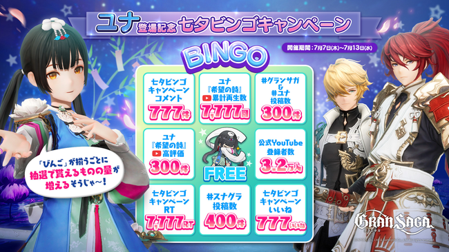 グランサガ公式Twitterで「ユナ登場記念 七夕ビンゴキャンペーン」を開始!