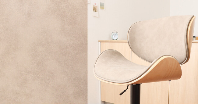 グレージュxナチュラル・・・馴染みよいグレージュカラーの素材は本革さながらの「PUレザー」を使用。水分をはじく合成皮革です。ナチュラルな温かみを感じる木目とのコンビネーションは白壁と馴染み、お部屋を広く、明るくみせてくれます。
