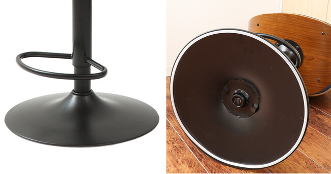 台座は幅約45cmと広く、重量もあるのでシートを高くした時でも安定感があります。台座の底面には樹脂製の緩衝材がついており床にもやさしい設計です。