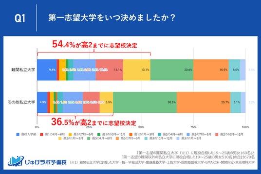 難関私立大学の現役合格者は、より早期に志望校を決定している傾向