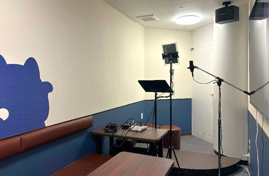・概要:部屋にはスピーカーが設置され、撮影だけでなく、複数人で利用することでバーチャルキャラクターと一緒にカラオケを楽しむことができる。