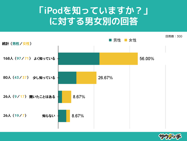 10~30代男女を対象とした『iPodを知っていますか?』というアンケートで、最も多かった回答は「よく知っている」で56%でした。