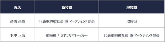 2025年7月1日付で、新たな代表取締役社長には、会社設立時より、経営に深く関わってきた高橋英樹氏を迎え、次なる成長ステージを力強く牽引していただきます。なお、代表取締役社長 下沖正博氏が退任し、引き続き取締役/ゼネラルマネージャー(GM)としてチーム強化を担ってまいります。