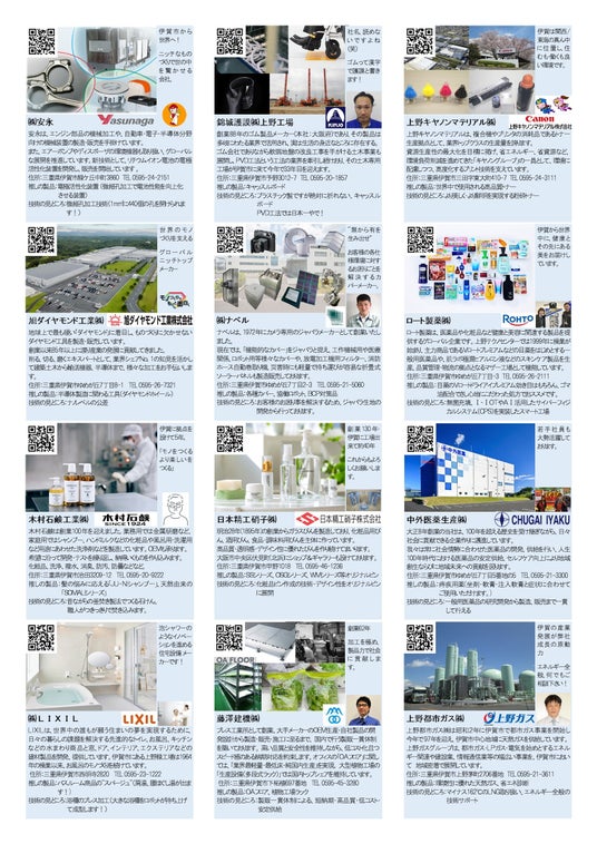 (株)安永、錦城護謨(株)上野工場、上野キヤノンマテリアル(株)、旭ダイヤモンド工業(株)、(株)ナベル、ロート製薬(株)、木村石鹸工業(株)、日本精工硝子(株)、中外医薬生産(株)、(株)LIXIL、藤澤建機(株)、上野都市ガス(株)