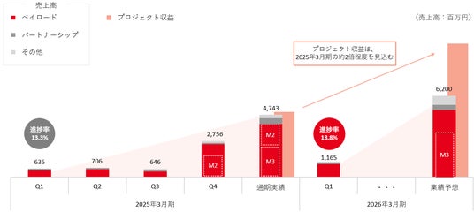 前期に引き続き、ミッション3からのペイロード売上が牽引し、Q1の売上は概ね計画通り進捗しました。経済産業省が実施する「中小企業イノベーション創出推進事業」(SBIR)の補助金を便宜上加味した「プロジェクト収益」ベースでは昨年度から約倍増を目指します。