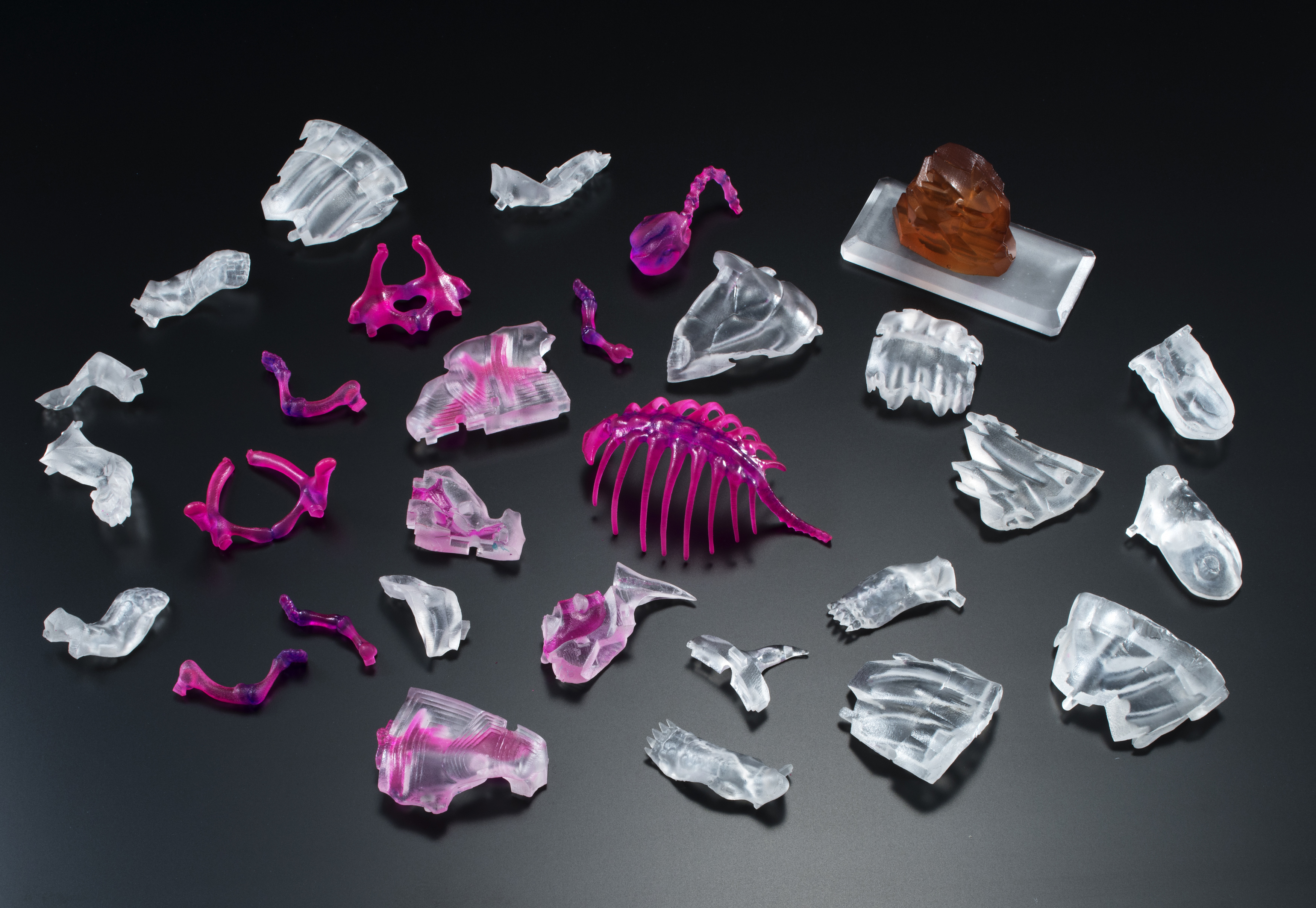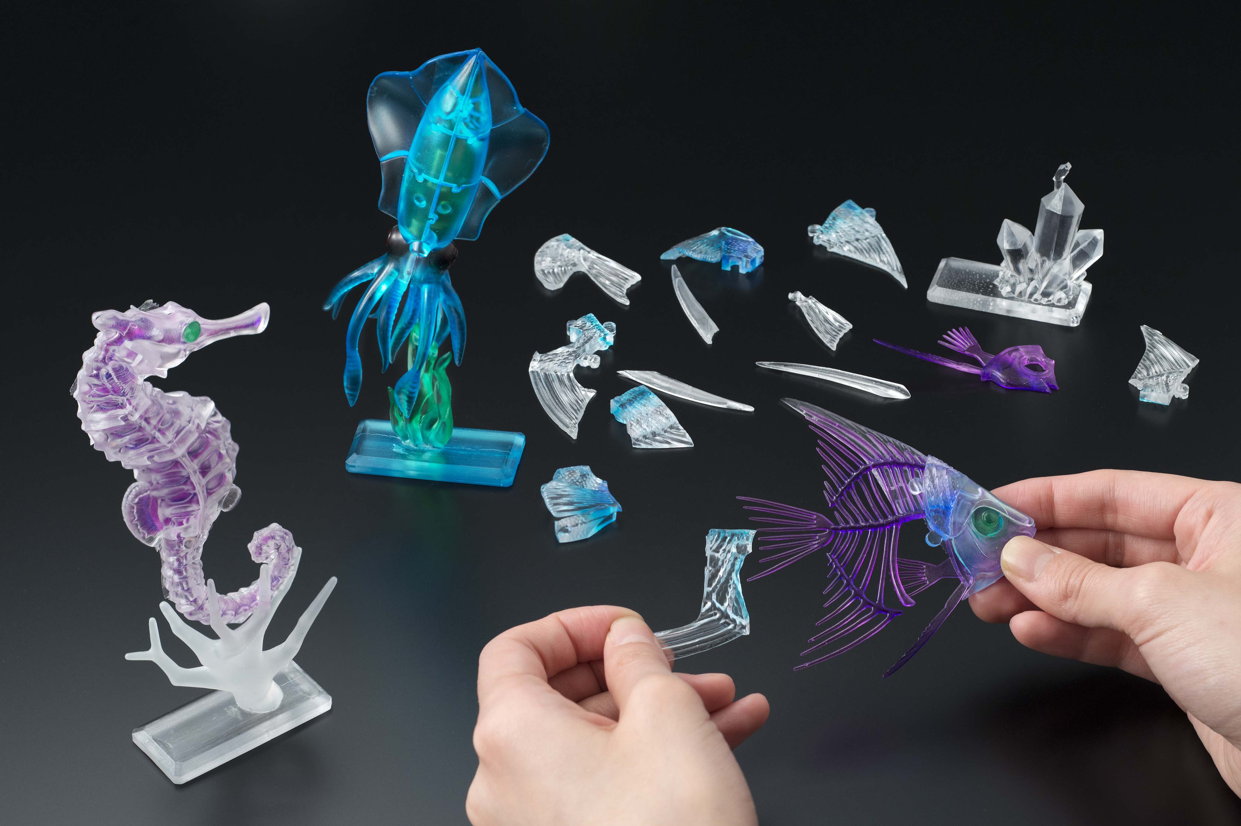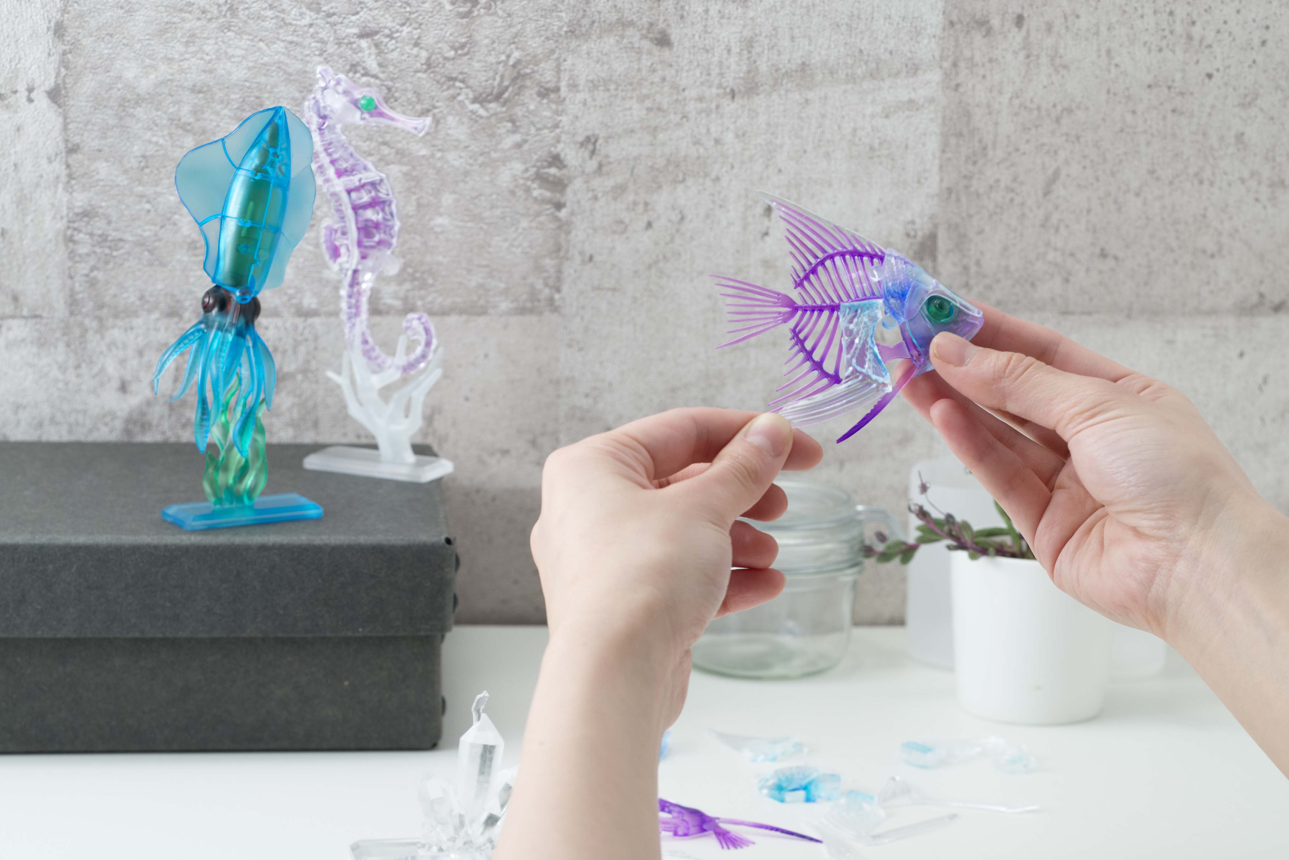 また、透明標本とは、生物のたんぱく質を酵素によって透明にし特殊な物質で硬骨を赤紫に、軟骨を青色などに染色した標本のことで、その美しい色合いは標本として観察するだけでなくアートとして注目されています。すでに写真集やそのほかの関連書籍も多く発売されており、大人の女性を中心に人気が高まっています。