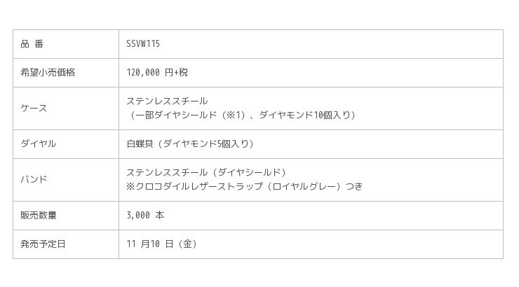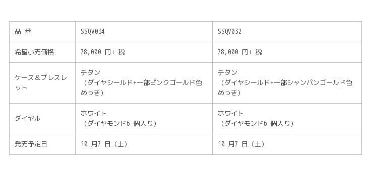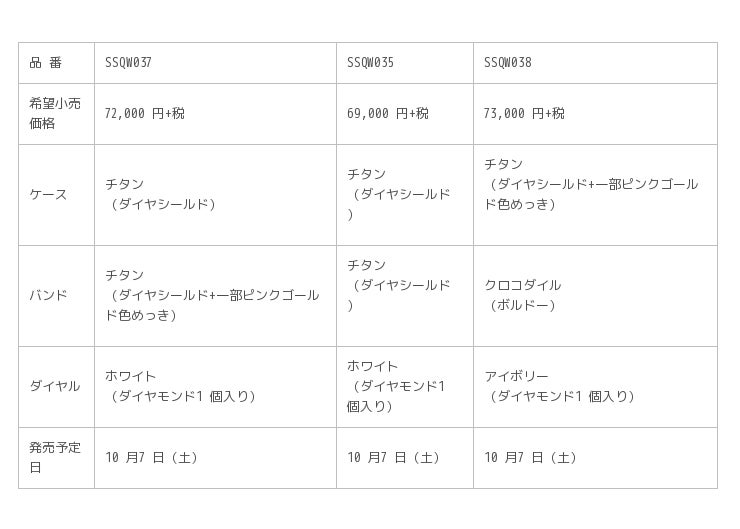 また、女性の憧れであるダイヤモンドが美しく輝く「Lady Diamond(レディダイヤ)」シリーズのレギュラーモデルも、希望小売価格69,000 円+ 税~78,000 円+ 税にて、2017 年10 月7 日(土)より全国で発売いたします。