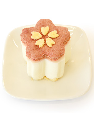 紅白色に仕上げた桜型のスポンジに、犬たちが好きな厚みたっぷりのレアチーズ生地をサンドしました。上部にのせたピンク色のスポンジは、桜の花びらの柔らかさを表現するためふわふわに仕上げています。(内容量:75g、サイズ:縦横 約5cm×高さ 約5.5cm、価格:935円(税込)、原産国名:日本)