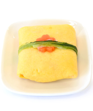 ふんわり卵の中に入ったお寿司をコマツナでぐるっと巻いたふくさ寿司です。中はご飯に鶏肉と彩り鮮やかな野菜を混ぜ、桜型のニンジンが隠れていますので、ぜひ探してみてください。(内容量:100g、サイズ:約6.5cmの正方形、価格:880円(税込)、原産国名:日本)