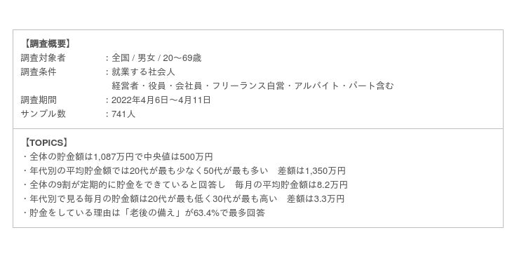 生活していく上で必要な最寄品を初めとする多くの値上がりで出費が増加していく中、Job総研では社会人の平均貯金額や毎月の貯金可不可及びその額、また貯金をする理由やコロナ前後の貯金額増減などについて調査した「2022年 貯金実態調査」を実施しました。