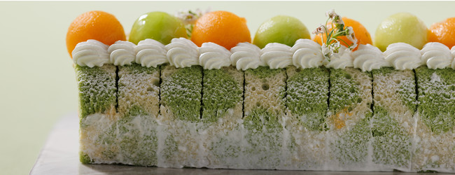 ロールケーキは、淡いグリーンと爽やかオレンジ色のコントラストが鮮やかで、フォトジェニックなスイーツです。