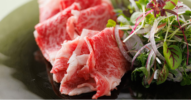 適度な脂があり、柔らかい食感が特徴の国産牛しゃぶしゃぶは、目の前でシェフが調理します。